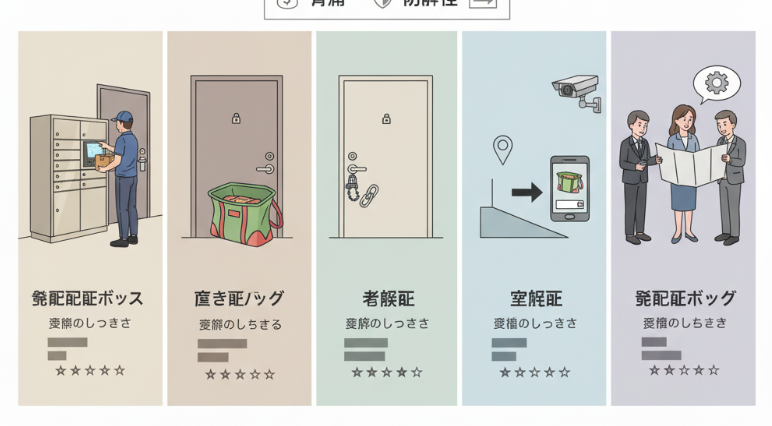 3. 【本題】マンション置き配盗難対策5選(費用・防犯性・設置のしやすさで比較)