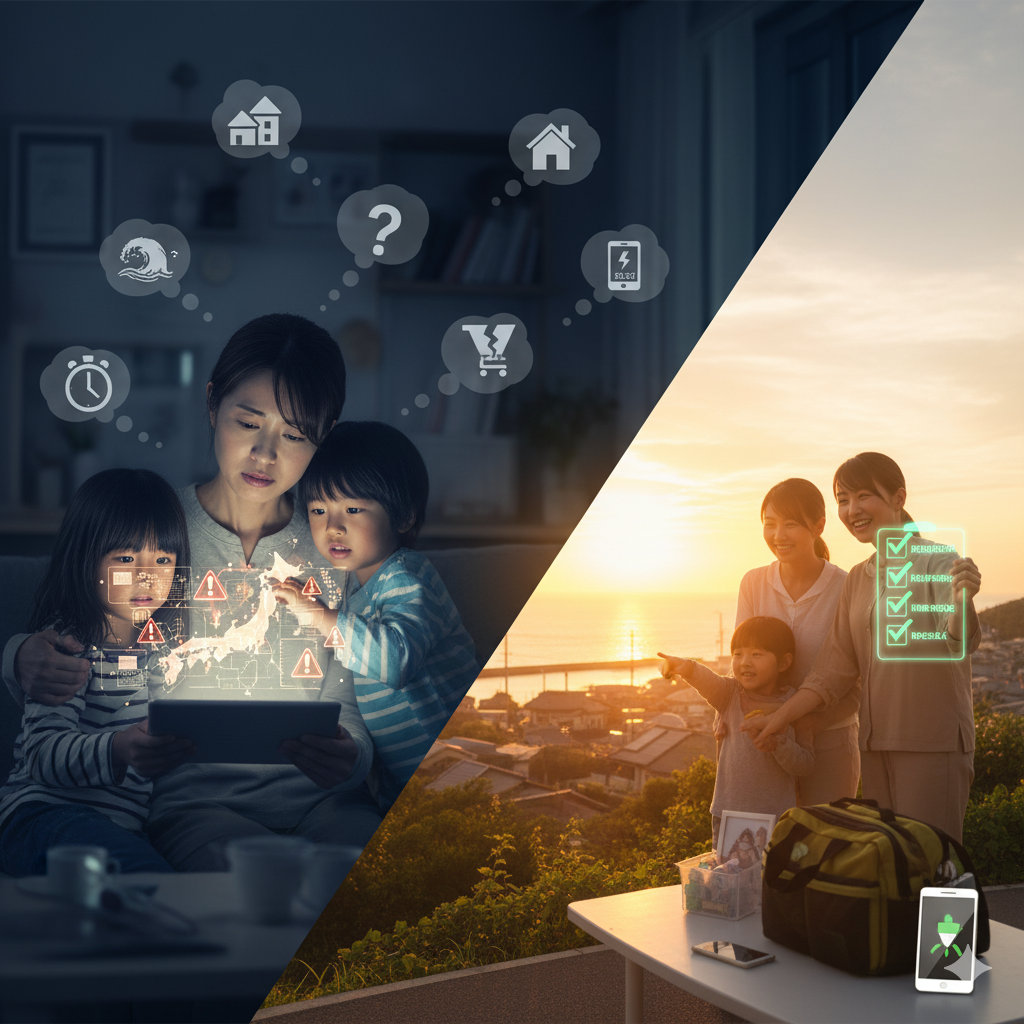 「南海トラフの知識」を得たあなたは、もう不安なだけの一般人ではありません。ここからは、知識を**「行動」**に変え、家族を守るための具体的な3ステップに進みましょう。